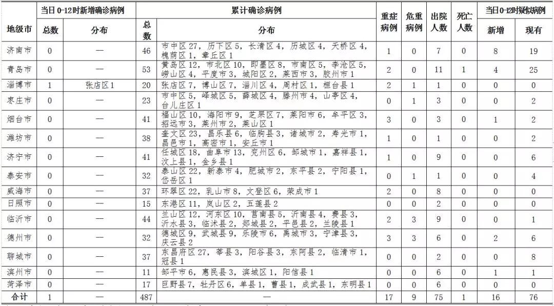 荔枝新闻讯 据山东卫健委消息,2020年2月11日0—12时,山东省报告新型冠状病毒肺炎新增确诊病例1例,累计确诊病例487例(含重症病例17例,危重症病例9例,治愈出院75例,死亡病例1例);新增疑似病例16例,现有疑似病例76例。截至目前,追踪到密切接触者13300人,已解除医学观察9735人,诊断为疑似或确诊242例,尚有3323人正在接受医学观察。