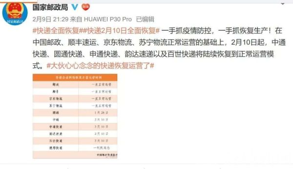 2月10日,国家邮政局发布官方消息称快递公司全面复工,公告公布了各大快递物流公司复工时间表。除中国邮政、顺丰速运、京东物流、苏宁物流一直处于正常运营的状态之外,中通快递、圆通快递、申通快递、韵达速递以及百世快递等企业陆续恢复正常运营。那么,复工的情况如何,市民应该如何取件才安全呢?