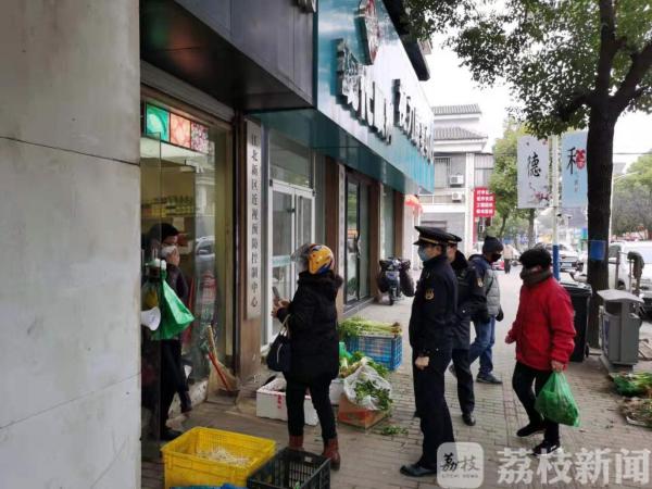 小小服装店变身小菜摊经营蔬菜、副食,没有疫情防控措施且占用人行道,造成市场外围人员聚集,一查之下竟无工商营业执照,大厂街道综合执法大队执法人员发现后及时叫停相关经营活动。