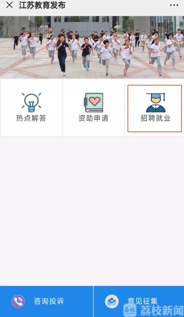 通过“江苏教育发布”微信公众平台下方的“微服务”按钮,找到“招聘就业”图标,点击可进入“91job智慧就业平台”(或点击下方“阅读原文”进入)。