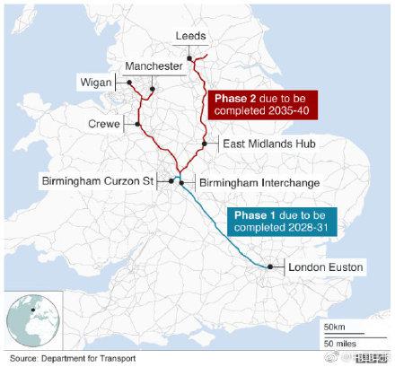 英首相约翰逊11日表示,英国高铁2号线项目(HS2)将继续推进,虽然“这是一个有争议的艰难决定”。这条总长约760公里的双轨高铁计划从伦敦出发,在伯明翰分为两条支线,分别通往曼彻斯特和利兹。该项目一期于2017年获得英国议会批准,但因预算大幅超支而饱受争议。据估计,该项目完工成本可能高达1000亿英镑(合9013亿人民币)。