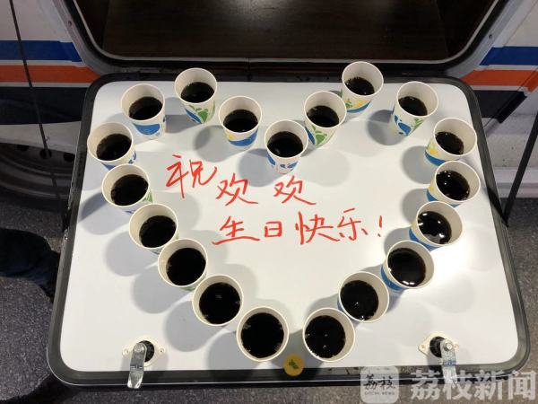 在江苏省人民医院感控科刘波副主任医师的严格指导下,“生日会”在户外举办,因为没有桌子,大家临时用两个应急救援包拼在一起当桌子,由陈欢欢把蛋糕切成小份,每个人拿完蛋糕迅速站回原地。虽然大家至少相隔一米远,当各自终于看清队友口罩下的“真面目”后,队员们齐齐唱出“祝你生日快乐!”
