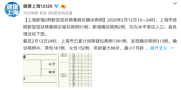 荔枝新闻讯 2020年2月12日12—24时,上海市排除新型冠状病毒肺炎疑似病例51例;新增确诊病例2例,均为本市常住人口。