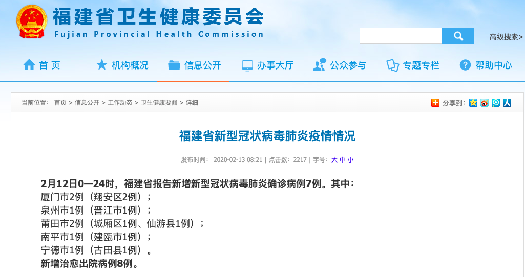福建卫健委官网截图