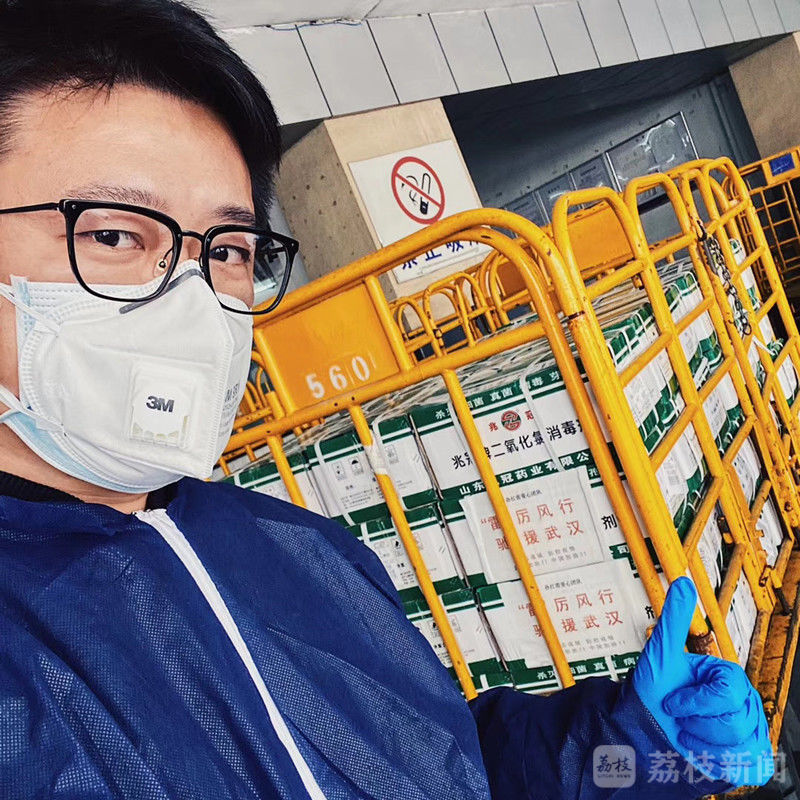 孙红雷捐赠的物资具体数字我不太记得了,至少有300箱,这批物资不是定向的,是牵线人根据医院实际情况指定几家医院,由我护送过去。那天我在微博上传了一张和他的物资的合影,孙红雷还回复了我,挺有成就感的。