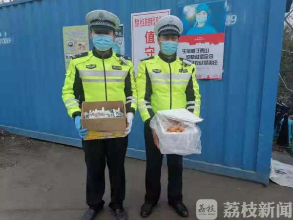 中队民警向记者介绍:“一开始我们民警都没反应过来,后来看到了物品上面的字条我们才明白是怎么回事。元宵节那天还有一位大爷给我们送了元宵,很感动!有了群众的支持,我们一定能够战胜这次疫情!”
