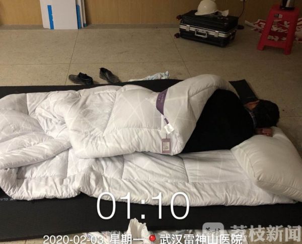 按照工程量,正常施工快得话要半个月,而这次给施工队的时间只有3天半。疫情就是命令,时间就是生命。朱金文和100多名施工人员24小时连轴转,人手紧张,管理人员全部上。大部分人平均每天的工作时间超过18个小时,车上眯会、席地而睡是常态。2月8日,雷神山医院一期工程全面交付投入使用。