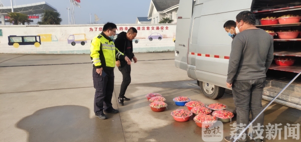2月13日凌晨,盐城境内受浓雾影响,多条高速实行特级交通管制,禁止除执行公务的特种车辆以外的社会车辆上高速行驶,一辆装运新鲜草莓的面包车也因此被拦停在高速口,盐城交警高速二大队民警胡泽了解到这个情况后,发动同事购买了这批草莓,最大限度减少了货主的损失。