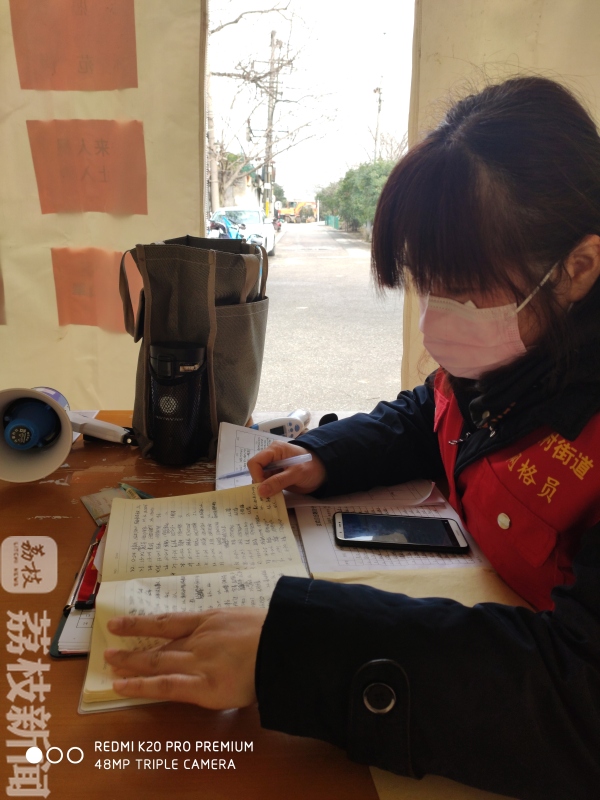 在“和平大沟”入口,守点的网格员张强,一边测量出入人员的体温,一边进行第二轮网格点居住人员的登记。第一轮登记中,张强通过给网格里约400户人家逐个拨打电话,了解他们的返宁时间、春节出行等情况,并详细地记录在网格表上。第二轮摸底主要是针对第一轮中没有联系上的住户、租户以及暂未返宁的人员进行再次登记,电话打不通的就上门联系,家里没人会在门上贴告知书,告知居民回来后应立即与社区联系。