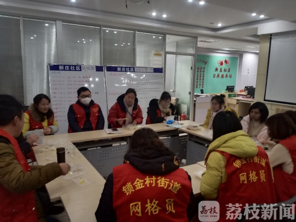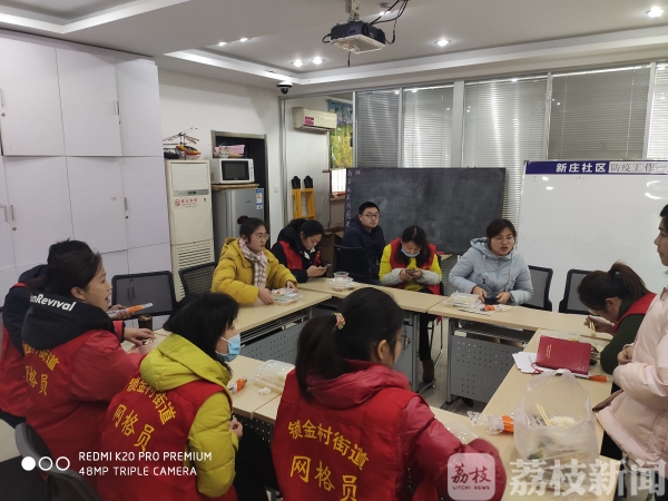 在新庄社区的服务中心,社区所有的网格员已经在会议室就位,社区书记周会娟给所有人布置了今天的任务:一方面,为了更好地统计数据,街道统一印发了《小区进出人员登记表》,需要每名网格员把自己网格内的进出口记录本进行更换;另一方面,为了更好地掌握每个居民的出行情况,疫情期间,居民可以通过扫描“我的南京”APP上的二维码进出社区,这样居民在此期间去过哪些地方都一目了然。网格员们需要让小区的物业落实这项工作,对于没有物业的自管小区,需要网格员去对接值守点位的志愿者,让志愿者做好登记工作。周书记强调,网格员一定要做好一线的防疫工作,要将出入人员的网上以及纸质登记表格一起做好,做到返宁人员及时登记,外来人员严禁入内。