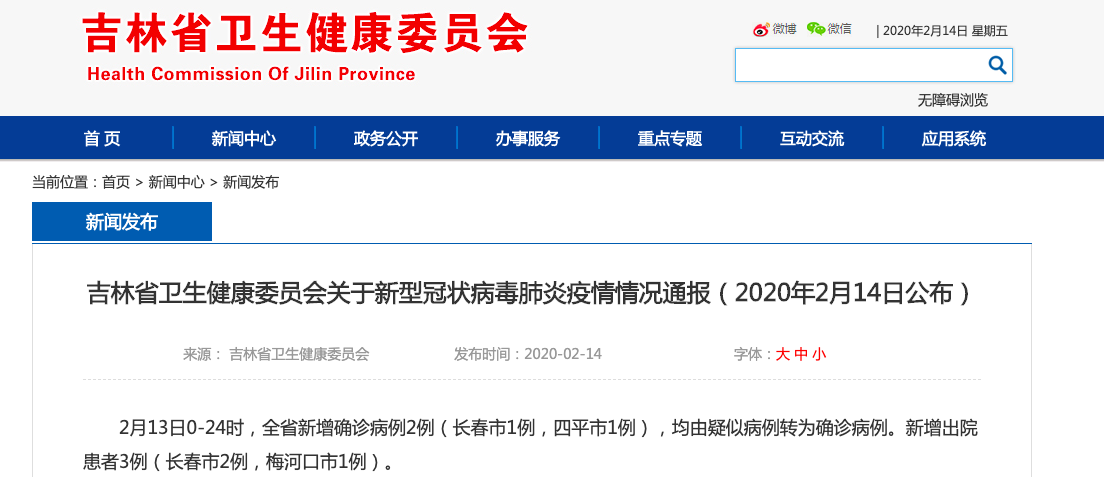 吉林卫健委官网截图