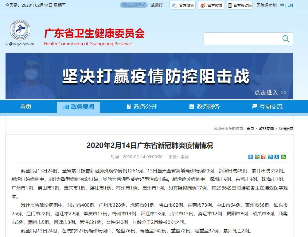 广东省卫健委官网截图
