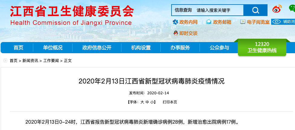 江西卫健委官网截图