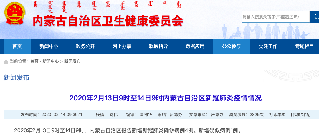 荔枝新闻讯 2月13日9时—14日9时,内蒙古自治区报告新增新冠肺炎确诊病例4例,新增疑似病例1例。