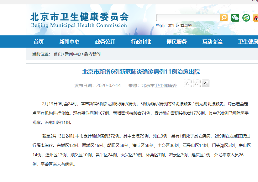 北京市卫健委官方网站截图。