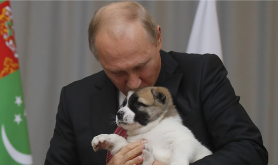其实,普京对狗的喜爱广为人知,不少外国政要也出于这种考虑纷纷将小狗列为给普京送礼的选择。就在去年1月,普京访问塞尔维亚时就收到了塞尔维亚总统亚历山大 武契奇赠送的一只4个月大的萨普兰尼那克犬。2018年10月,土库曼斯坦总统别尔德穆哈梅多夫将一只名为“韦尔内”(Verny,俄语意为“忠诚”)的中亚牧羊犬送给普京,当作生日礼物。