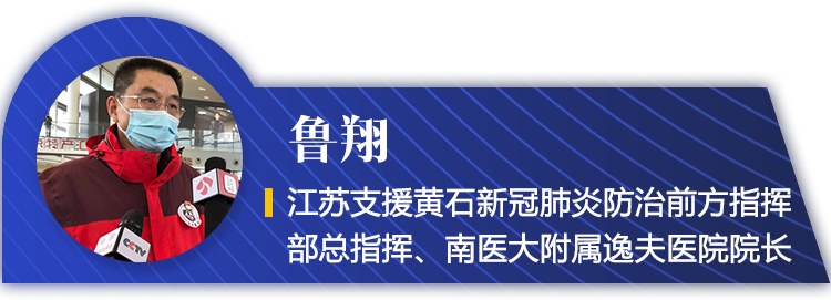 大家好,我是江苏对口支援黄石新冠肺炎前方指挥部的总指挥鲁翔,我来自南京医科大学附属逸夫医院。我们指挥部6位同志,医疗队304位同志,感谢大家的关心。 经过两天紧张的工作,我们已经对黄石市8家定点收治医院,50多家发热门诊、20多家集中隔离点等,进行了对接、摸排、走访。我们拿出了8家对口医院以及乡镇、社区巡查整体工作方案。