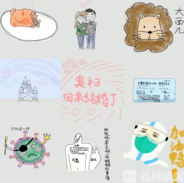 除了顾晓雯夫妇,太仓市第二批驰援湖北医疗队队员季怡的未婚夫为她画了一组画,记录他们从认识到现在的故事。
