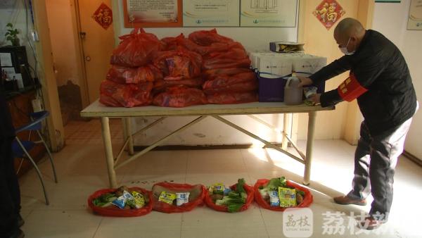 随后,物业工作人员将这些蔬菜还有调味品,紧急分装,冒着雨雪第一时间送到小区125户外地返宁隔离的小区业主家中,同时,对于统计的475户老年人和买菜不方便的业主,也进行了一一赠送,剩余的140余份也在2月16号全部赠送给了有需要的业主。