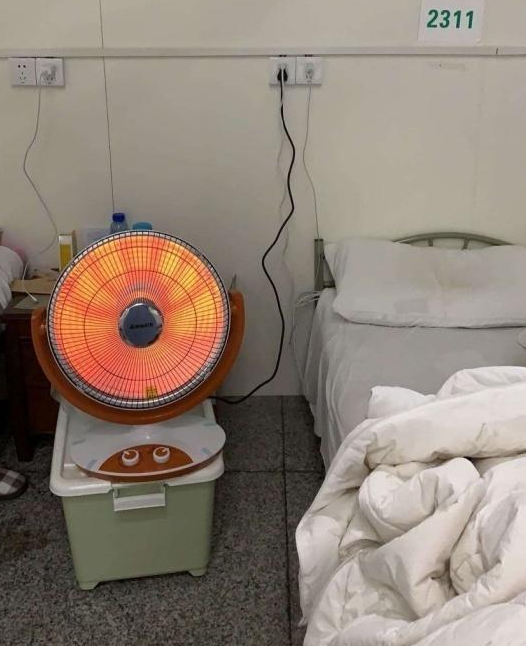 记者从多个方舱医院了解到,除了添置棉被和衣物,方舱医院还有电暖设备加持。武昌方舱医院、汉阳方舱医院、江汉方舱医院在患者入院时,为每位患者都发放了电热毯。江汉方舱医院还配发50台电暖小太阳,平均每个病区1-2台,电暖小太阳共同运作,舱内温度达到10摄氏度以上,与降温前舱内温度基本持平。