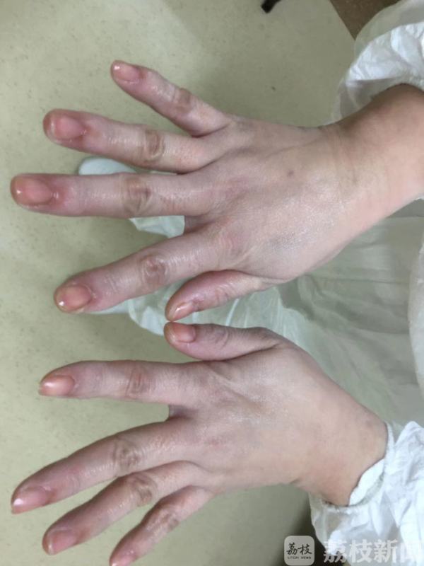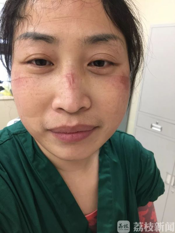 千里之外的张年,奋战在武汉市江夏区第一人民医院呼吸重症科里,与病魔斗争,和死神赛跑!衣衫被汗水湿透,干了湿,湿了干;双手被药水浸泡,由肿胀到出血;用餐不规律,胃里不是胀,就是痛;额头、鼻梁、面庞处处是口罩、眼罩留下的印迹;更难熬的是骨折未愈的脚,每天都经历从疼到麻,再到钻心的痛。