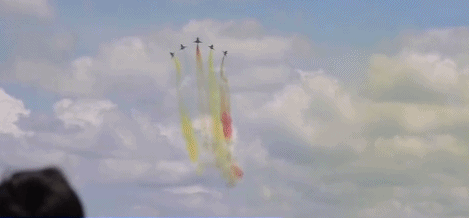 11时47分,中国空军八一飞行表演队的6架歼-10在全场期待的目光中,以“人字形”编队低空通场,海面上空留下6道长长的彩烟。双机对头交叉、六机三角队俯冲、斜斤斗、五机水平向上开花、单机小速度平飞,中国空军八一飞行表演队多队形特技飞行轮番上演,现场观众欢呼点赞。