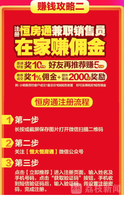 另外记者获悉,“恒房通”近三天新增用户300多万人,累计用户数超过1000万人,其中恒大员工14万人、恒大老业主147万人,其它83%都是各行各业社会兼职销售、以及房产专业中介人员。截至目前,恒房通平台已累计发放佣金和奖励共计近100亿元。