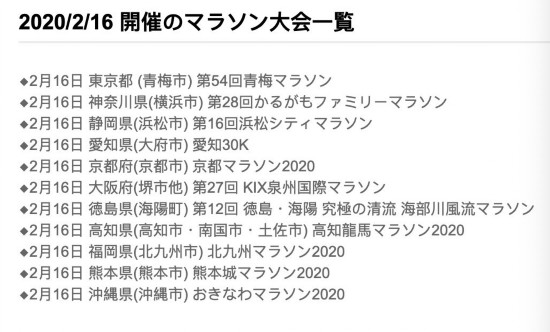 2020年2月16日,日本全国11地马拉松大赛开赛一览