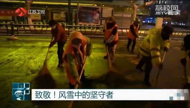 在风雪中坚守的还有环卫工人。为了不影响防疫和生活物资运输,扬州、宿迁等地的上千名环卫工人连夜对城区所有道路展开除雪作业,同时加大雪后消杀力度。地方政府为一线人员添置了大衣、取暖器等御寒物资,不少热心市民也给他们送来暖心的食物。