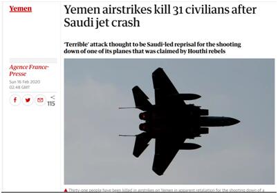 联合国也门人道主义协调员办公室在一份声明中表示,“初步实地报告显示,2月15日,在对焦夫省Al-Hayjah地区的袭击行动中,多达31名平民被杀,另有12人受伤……”报道还援引当地媒体报道称,死伤者中有妇女和儿童。