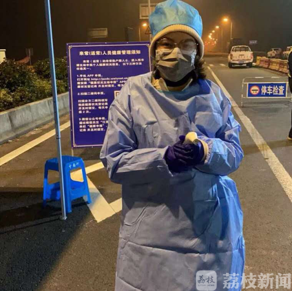 成为常熟市东张卫生院交通防控的志愿者后,蔡柯从2月9日开始工作,已经连续工作6个夜班了。每天夜里0:00点到早上8:00,准时到岗,在高速出口处协助卡口医生测量路过人员的体温。由于夜里温度低,蔡柯和其他志愿者们会“蹦蹦跳跳”来取暖。