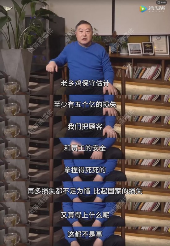 但他指出这不是事。“我们把顾客和员工的安全拿捏的死死的。再多损失都不足为惜,比起国家的损失这又算得了什么呢?这都不是事!”