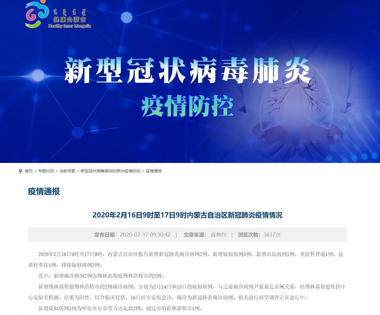 内蒙古卫健委官网截图