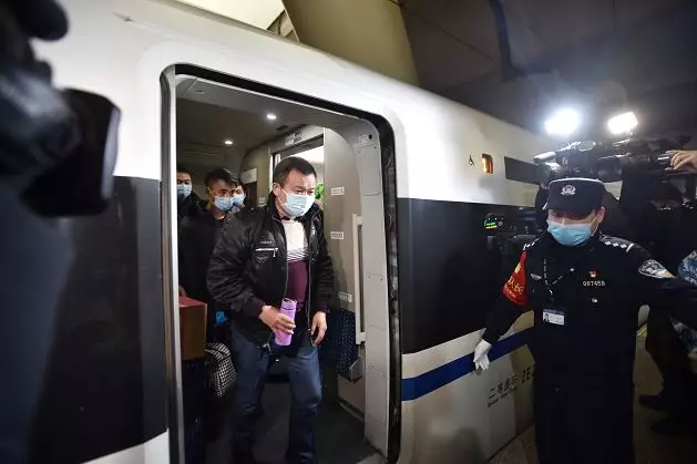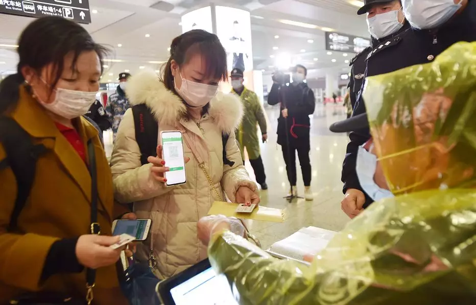 在出站口,这些刚下列车的复工人员按照疫情防控措施,继续接受体温测量和身份核验,并做好“健康码”的审核,杜绝输入性疫情的发生。