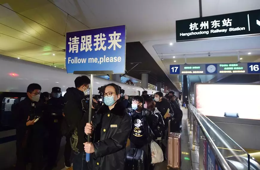 “铁路部门根据企业需求,配合地方政府开好其他复工人员专列,完善旅客进站、候车、乘车、出站等环节的疫情防控和客运服务措施,确保复工人员安全、有序、温馨出行。”杭州东站值班站长杨咪表示。