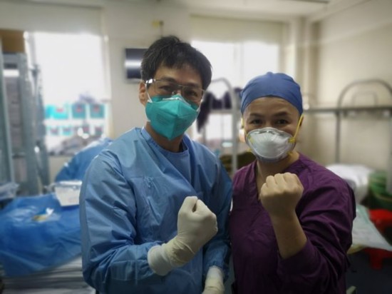 在广东省支援湖北疫情防控医疗队的群里,有人把“德叔”去武汉前后的照片做对比,现在的他不仅憔悴,整个人“瘦到脱形”,看着让人心疼。出了病房的“德叔”与同事调侃,“刚从隔离病房查完房出来,每个人都是这样的。口罩眼罩帽子把脸都压扁了,洗漱完又很英俊啊!”然后接着说,千金难买老来瘦,开心都还来不及呢。