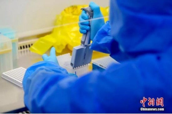 武汉市疾控中心工作人员进行病毒检测。 中新社记者 张畅 摄