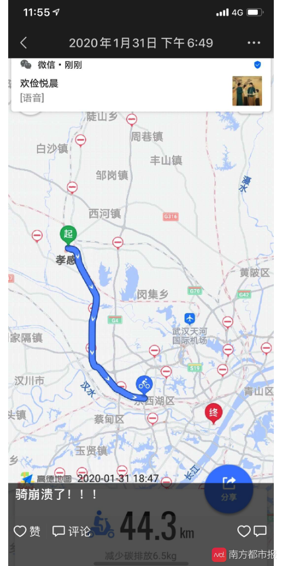 但封城之后,通往武汉公共交通全面停止,道路被阻断,还能怎么回去?开车能进入武汉的可能性很低,王欣决定骑单车。