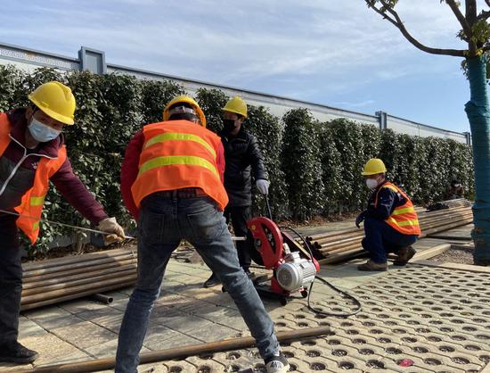 记者了解到,汤斌等人吃饭和住宿均有保障,施工进度正常。