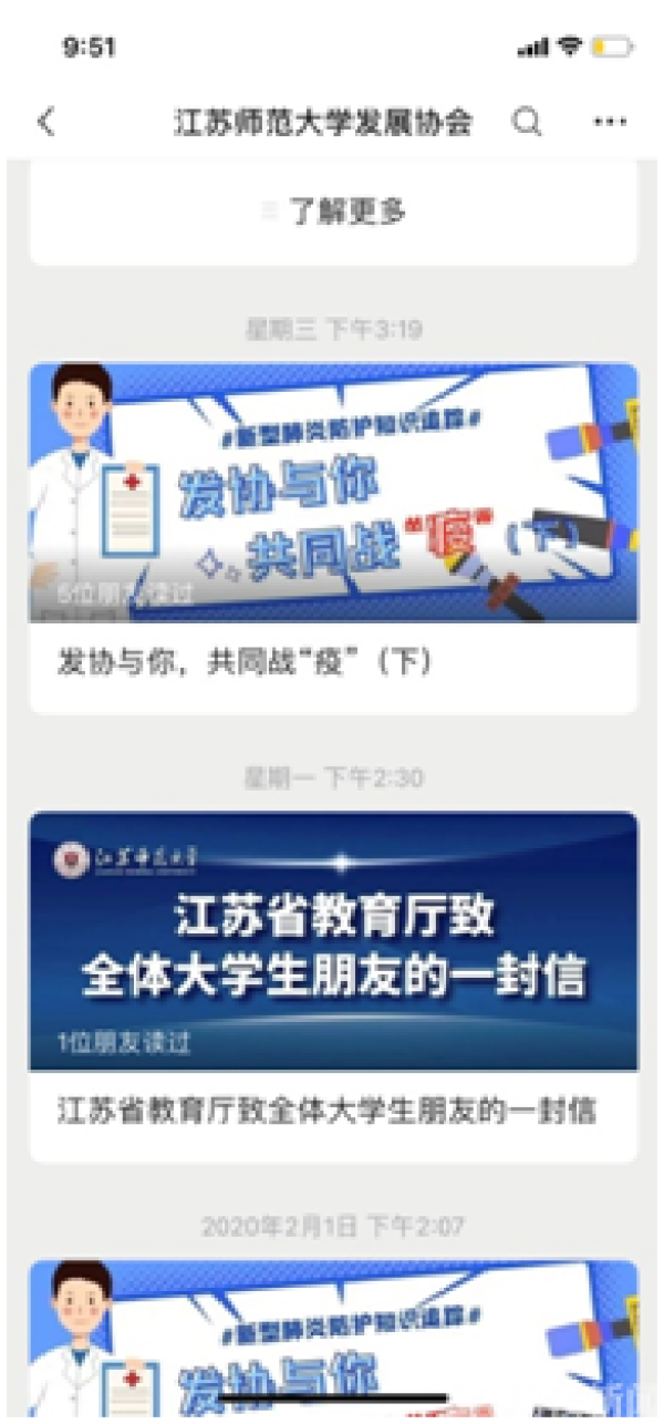 大学生发展协会、大学生心理信息站等学生社团自疫情发生以来,通过QQ和微信公众号等多个平台陪伴学生,到2月10日,已发送推文40余篇,累计浏览量近3万人次。在网上开展“解忧杂货铺”活动,倾听同学的烦恼和心声,在这个特殊的时期,通过朋辈互助,帮助同学舒缓心理压力,放松心情。