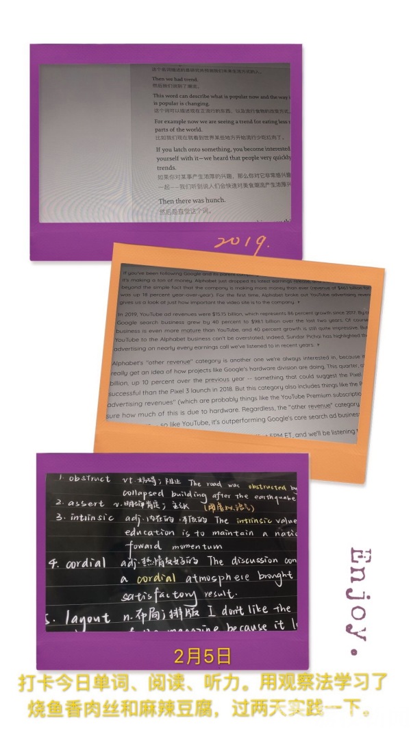 “不一样的21天,让我在纷纷扰扰之中可以平静下来,真正走近自己的生活中”;“每天一次小行动,让家居生活更有意义”;“不用每天抱着手机躺在床上,这样一个有意义的活动绝对不可以错过!”这是几位同学参加学校组织的21天系列活动后,写下的感想。