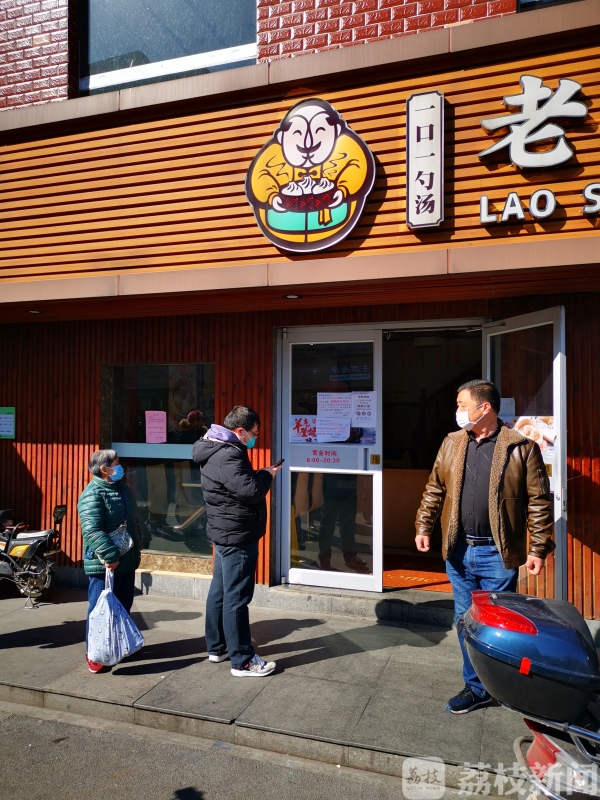 在文昌路的一家老盛昌汤包店,负责人表示,他们在春节期间并没有停业,根据防疫要求,他们已经取消了堂食,目前在美团和饿了么平台都是正常接单。不过在现场,记者发现已经出现了短暂的人员排队、聚集的情况。店内负责人随即在现场进行疏导。