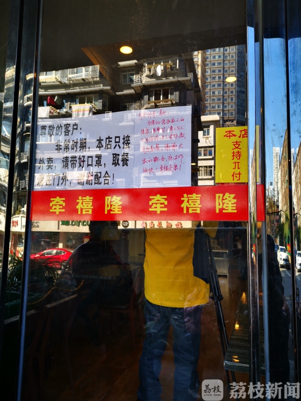 在外卖平台上,一家叫做牵禧隆菜馆的餐厅已经开始正常接单,2月18日上午,执法人员对这家餐饮店进行了突击检查。店内负责人表示,他们是在17日递交的复工申请,目前已经通过了审核。店内的营业人员都来自南京本地,他们也准备了充足的防疫物资。“一直在南京的员工有十四个人,我们采取轮班的方式,一个班七个人,前厅三个,后厨四个。昨天送了70多单。”店内负责人说。