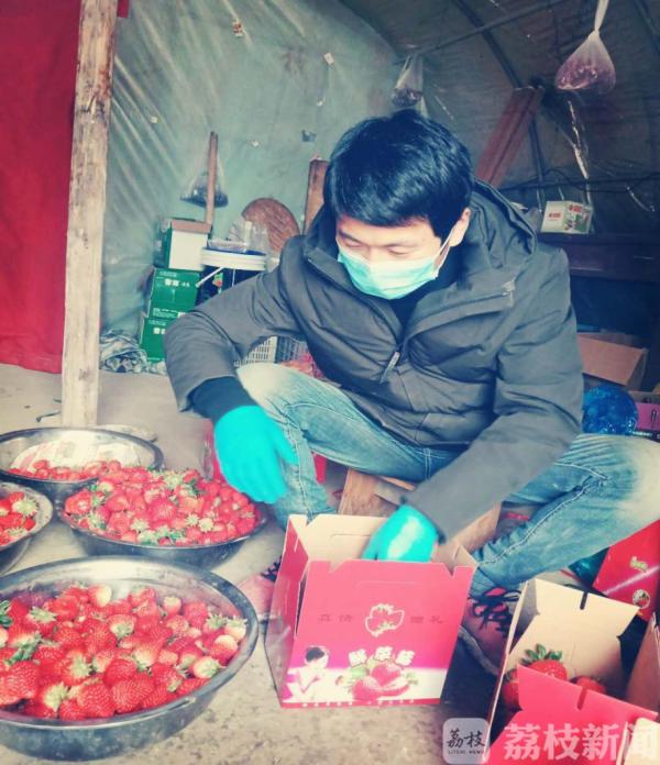 在一次防疫走访期间,江宁区石坝村网格员夏志毅发现辖区内草莓种植户杨子兵显得很烦恼,“我们这的草莓最近产量一天至少100斤,但是受到这一次疫情影响,都没人来买了,这次是要亏惨了。”看到种植户们的烦恼,夏志毅也急在心里,不能让种植户这么白白损失了,他觉得自己有必要帮助他们一把。 “线下不行,咱走线上看看 。”他把想法告诉了杨子兵和其子杨宏伟。随后三人,一起探讨销售思路,将线上销售方案勾画了出来。