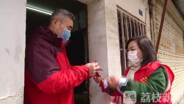 拿到香囊的居民们也对社区工作人员表示了感谢。而分发香囊自然不能少了居家隔离的人员,张先生前一阵子从外地返宁,最近仍处在隔离期,社区工作人员也把一只小香囊挂在了张先生家门口。张先生说,自己居家隔离期间,社区工作人员给予了他很多帮助和照顾。