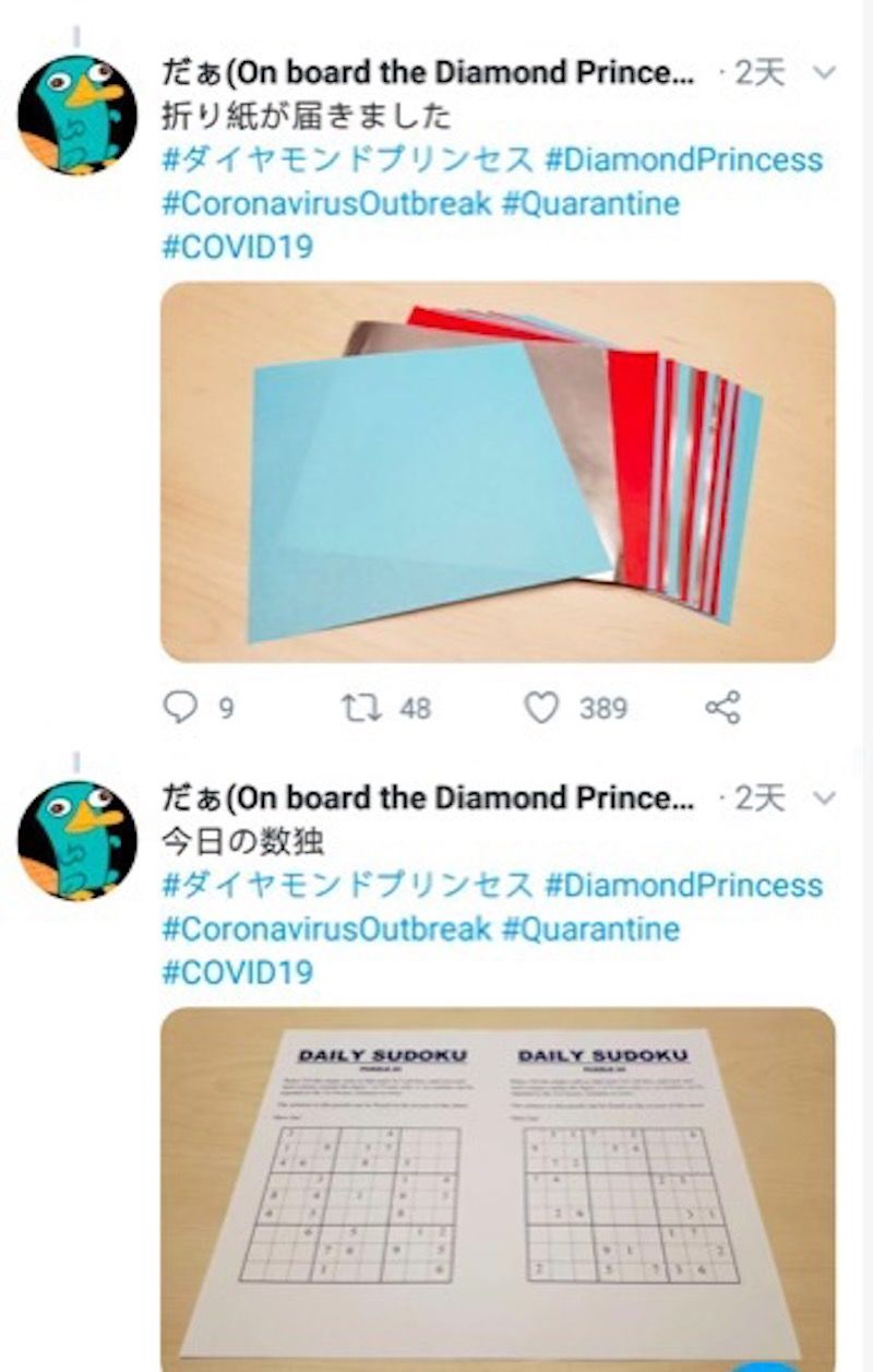 每一天的食物,是船上的人向外界报平安的信号。日本人大阿是从8号开始记录的。船上生活枯燥,他几乎隔半小时,就会更新一条动态。他每天都会看船上的新闻频道,做一份数独题,读报纸,有时候还会折纸。