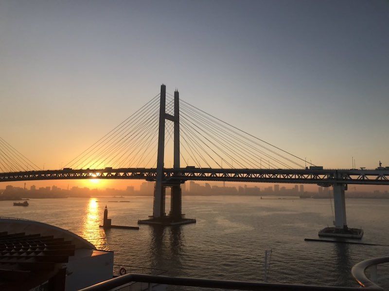 这也是澳大利亚的Clare Hedger每天最期待的事。2月9日,她吐槽已经48小时没有新鲜空气和阳光了。随后工作人员联系她,船上会有序安排旅客出舱,“享受放风”。站在甲板上,她觉得自己终于有活着的感觉了。她和母亲站在甲板上戴着口罩留下一张难忘的照片,背后是横滨的大桥。此后的几天,她每天都在读秒等待着登上甲板的一小时。2月13日,出去“放风”时,她看到了横滨红得发亮的夕阳。
