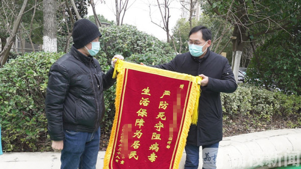 今天(2月19日)上午,南京建邺一栋居民单元楼解除了隔离。居民们将之前通过电话联系定制好的锦旗,送给了帮助他们渡过隔离的所有工作人员。