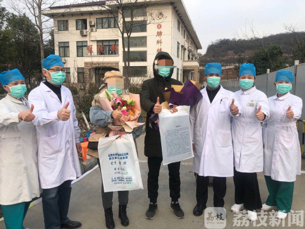 今天出院的两人均为普通型患者,其中一名男性20岁,河南周口人,在武汉某大学读书,因父母在丹阳务工,所以1月23日从汉口乘坐动车至丹阳过节,1月30日因咳嗽到丹阳市人民医院就诊,2月2日转送至镇江市第三人民医院隔离治疗。另一名女性今年32岁,家住镇江市京口区,与确诊病例有密切接触史,是一名确诊患者的妻子,2月8日核酸检测呈阳性后,由镇江市第三人民医院收治。