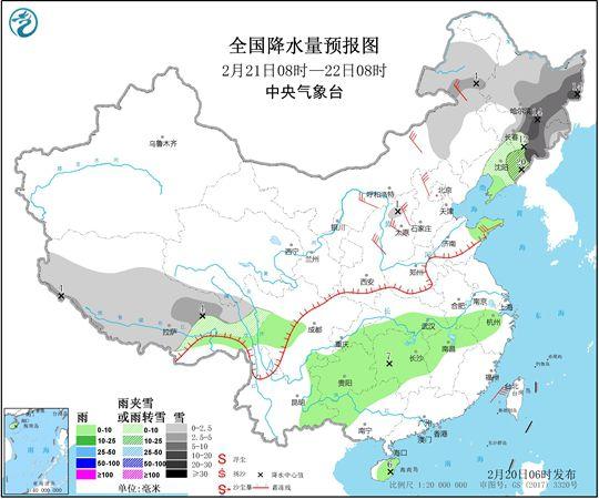 后天,全国降水范围明显缩减。预计,内蒙古东北部、东北地区中东部、北疆北部、西藏中部和南部、青海南部、川西高原北部等地部分地区有小雪或雨夹雪,其中,黑龙江东部、吉林东部、北疆北部等地局地有中到大雪(5~8毫米)。西藏东南部、江南西北部、西南地区东部、云南西部等地部分地区有小雨,局地有中雨。